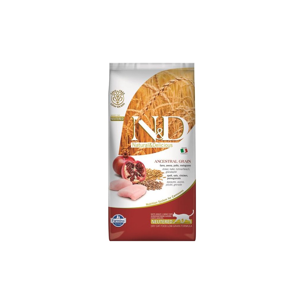Farmina N&D cat AG adult, neutered, chicken, spelt, oats & pomegranate 5 kg