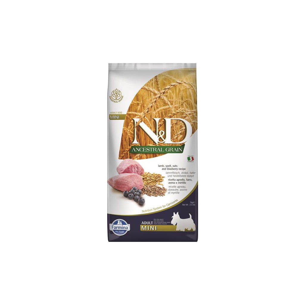 FARMINA N&D – AG ADULT MINI DOG lamb, spelt, oats & blueberry – Dospelý pes – malé plemená (granule pre psov), 7 kg