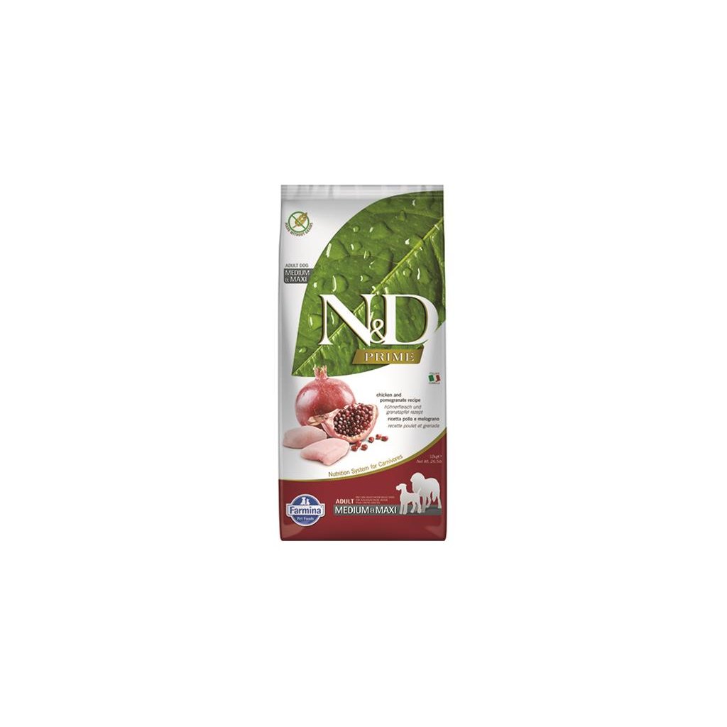 FARMINA N&D – PRIME (GF) ADULT MEDIUM & MAXI DOG chicken & pomegranate – Dospelý pes – stredné plemená a veľké plemená (granule pre psov), 12 kg