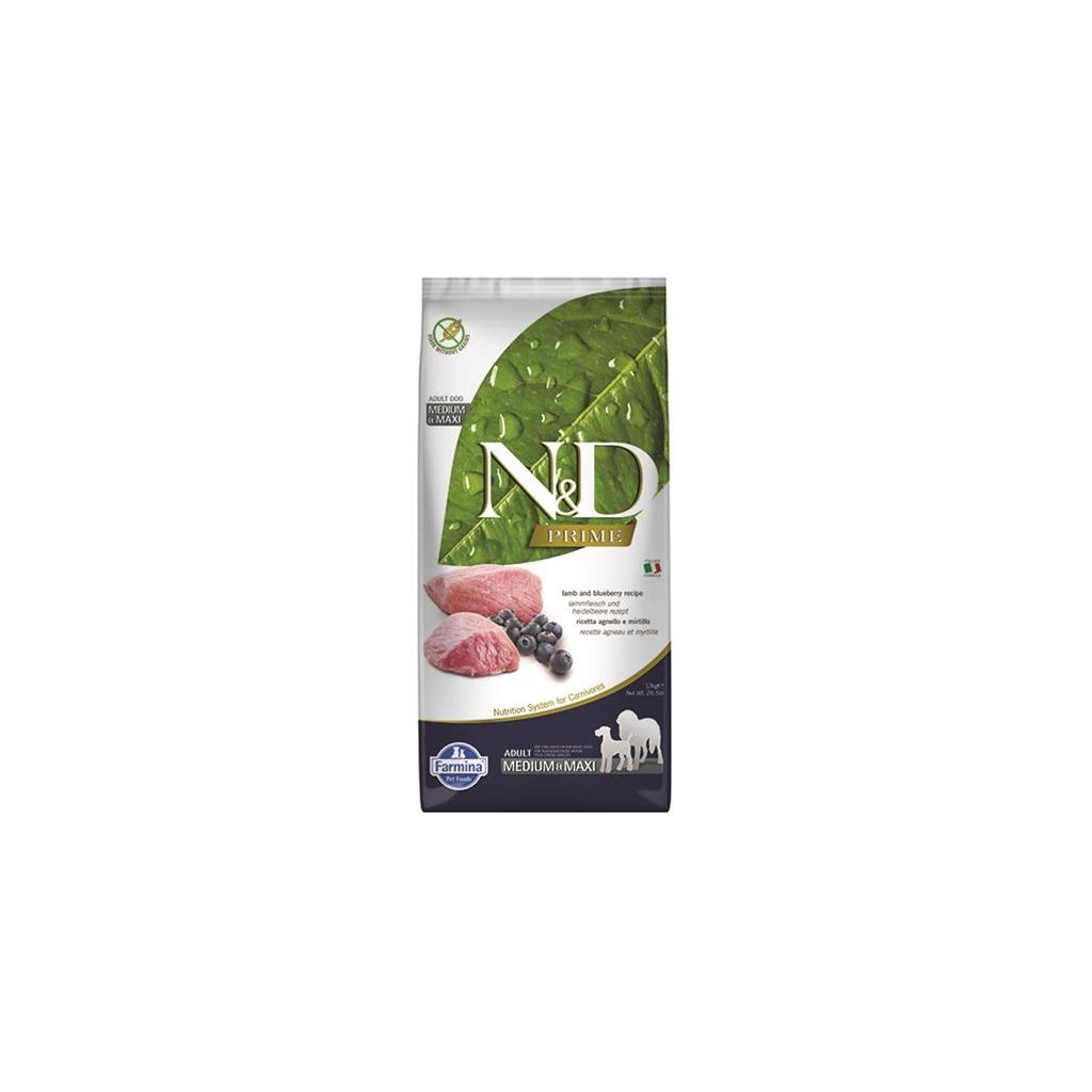 FARMINA N&D – PRIME (GF) ADULT MEDIUM & MAXI DOG lamb & blueberry – Dospelý pes – stredné a veľké plemená (granule pre psov), 12 kg