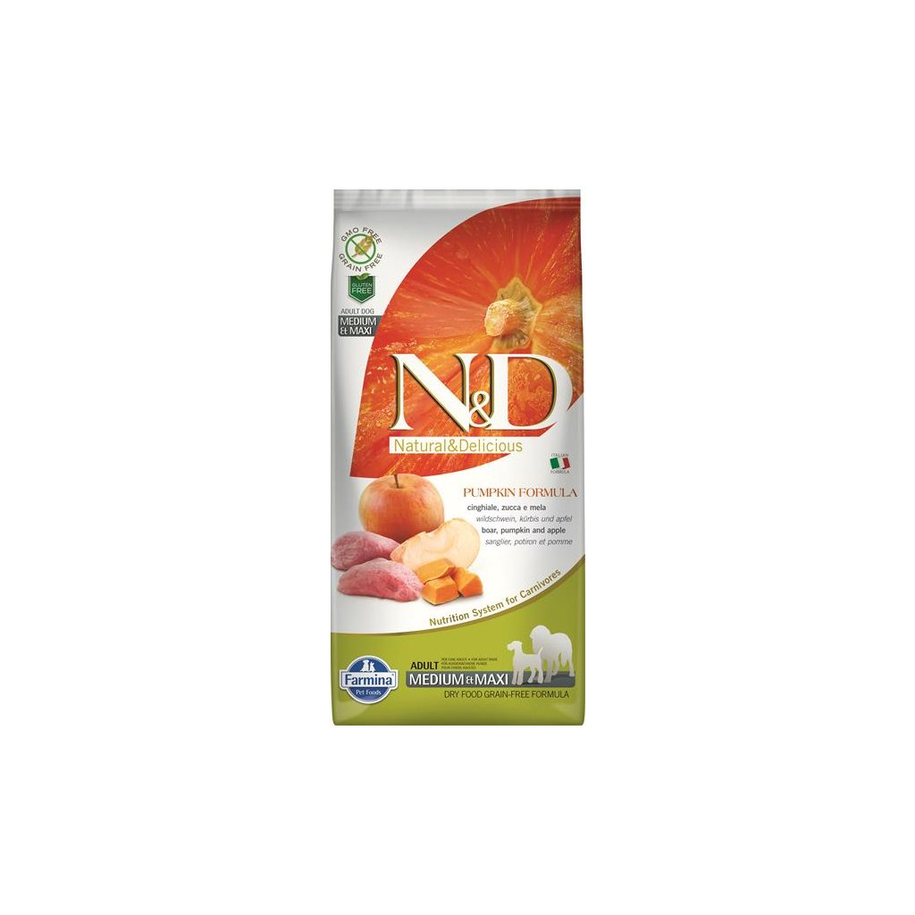 FARMINA N&D – PUMPKIN (GF) ADULT MEDIUM & MAXI DOG boar & apple – Dospelý pes – stredné a veľké plemená (granule pre psov), 12 kg