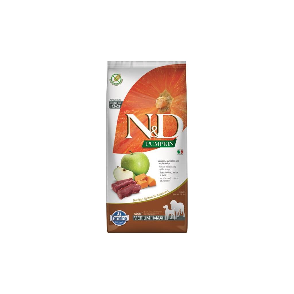FARMINA N&D – PUMPKIN (GF) ADULT MEDIUM & MAXI DOG venison & apple – Dospelý pes – stredné a veľké plemená (granule pre psov), 12 kg