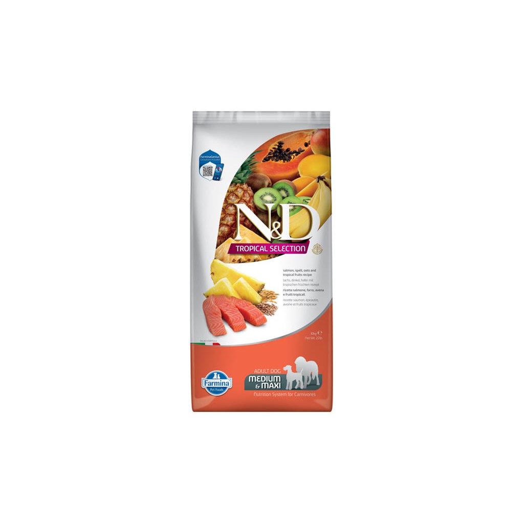 FARMINA N&D – TROPICAL SELECTION (AG) ADULT MEDIUM & MAXI DOG salmon – Dospelý pes – stredné a veľké plemená (granule pre psov), 10 kg