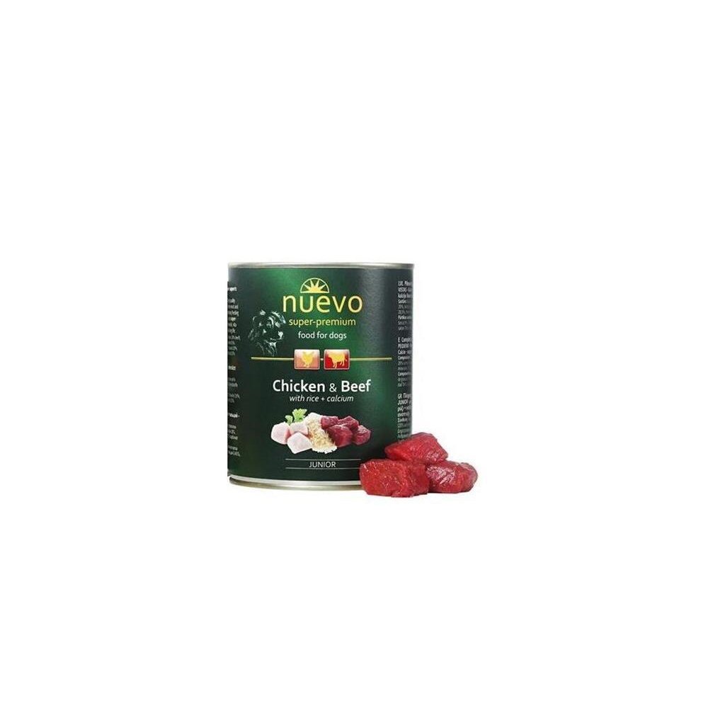 NUEVO dog Junior Kura a Hovädzie s ryžou + vápnik 800 g konzerva Kompletné superprémiové krmivo pre junior psy.Dodatočné parametre