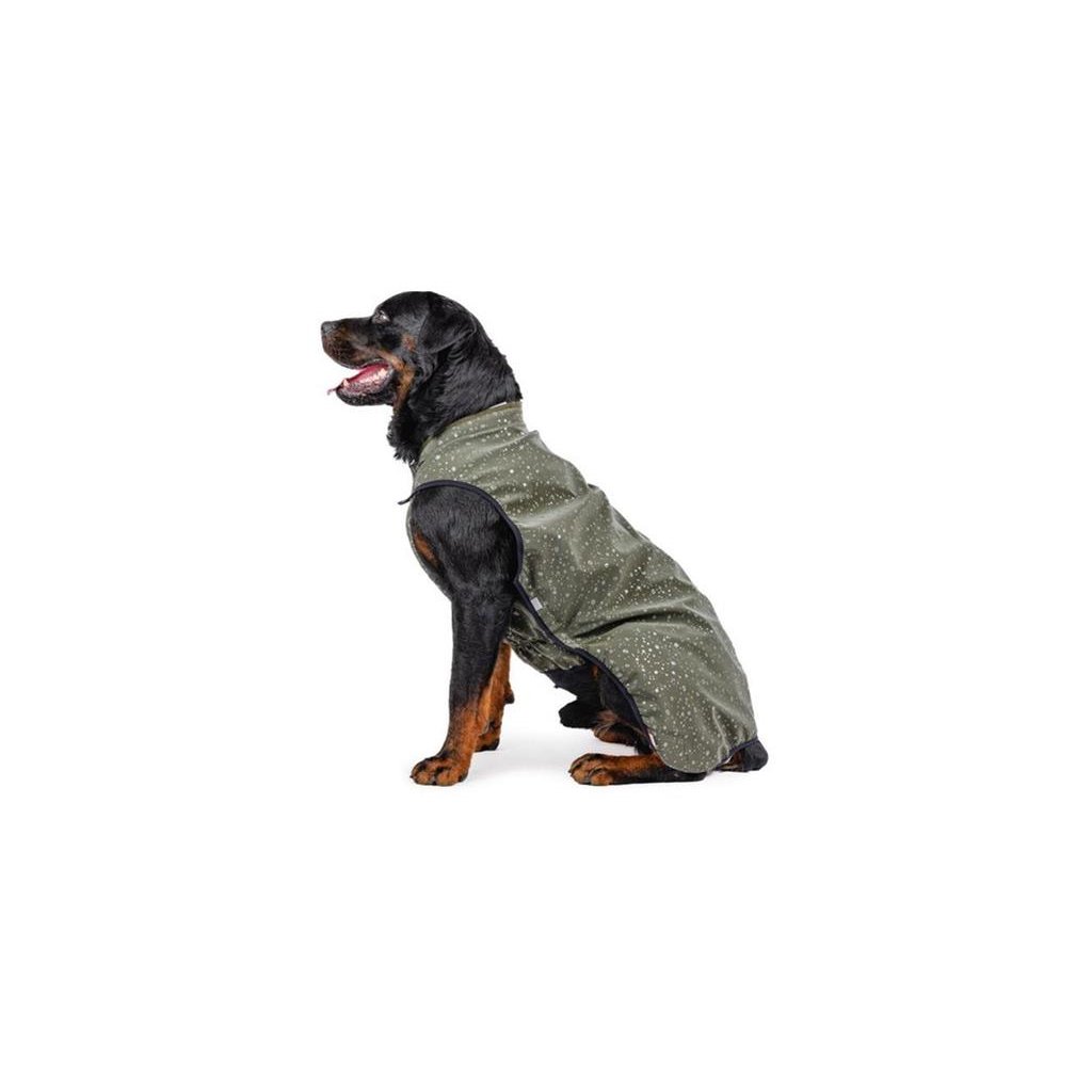 Obliekanie je ľahké a rýchle vďaka systému suchých zipsov: 1 pod krkom a 2 na bokoch. Pre bezpečnejšie venčenie za zhoršenej viditeľnosti je vesta vybavená reflexnými prvkami.