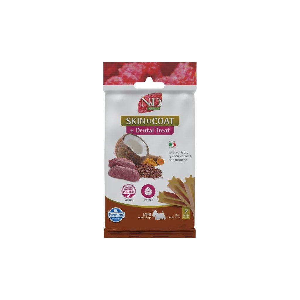 Pamlsok Farmina Quinoa Dog Skin Coat Venison Adult Mini 60g
